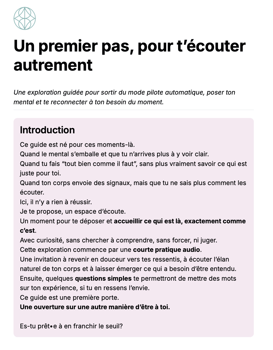Ce guide vous propose un temps court et guidé pour faire une pause sans pression et vous écouter autrement.